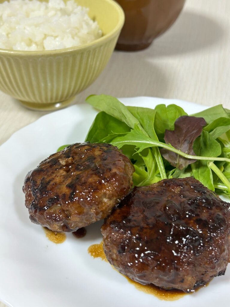 塩麴を使ったハンバーグ、玉ねぎ麹で」スープ、トマトとアボカドマリネなど